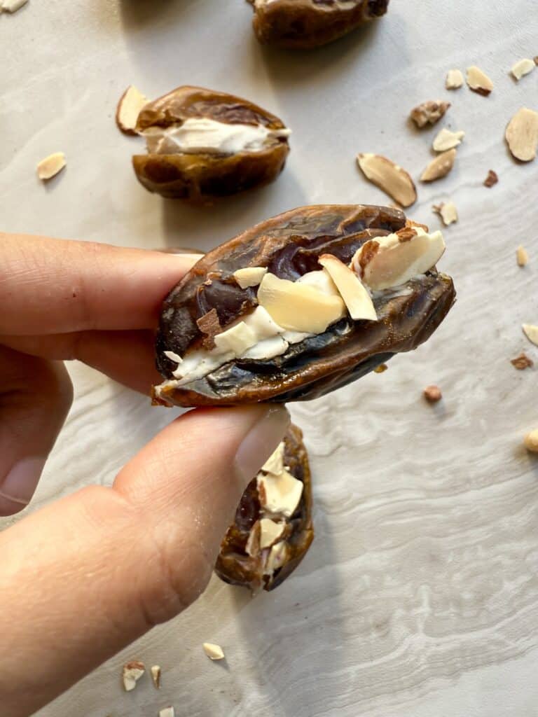 Medjool dates are ideal because they’re large, soft, and easy to stuff. Smaller Deglet Noor dates can also be used for lower sugar per piece.