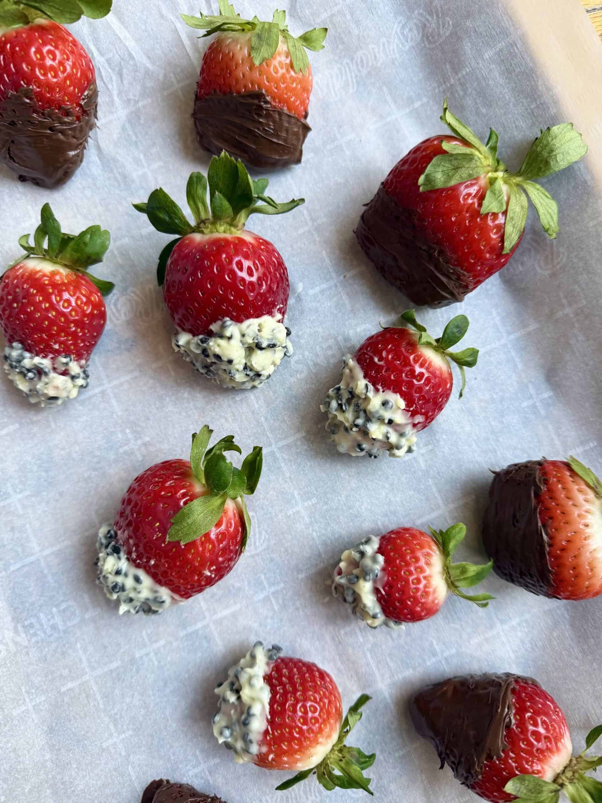 - Drizzle effect: Drizzle white chocolate over semi-sweet strawberries