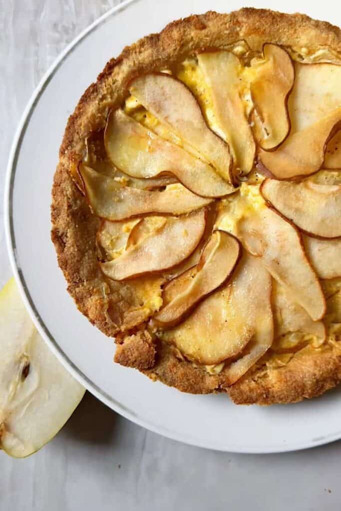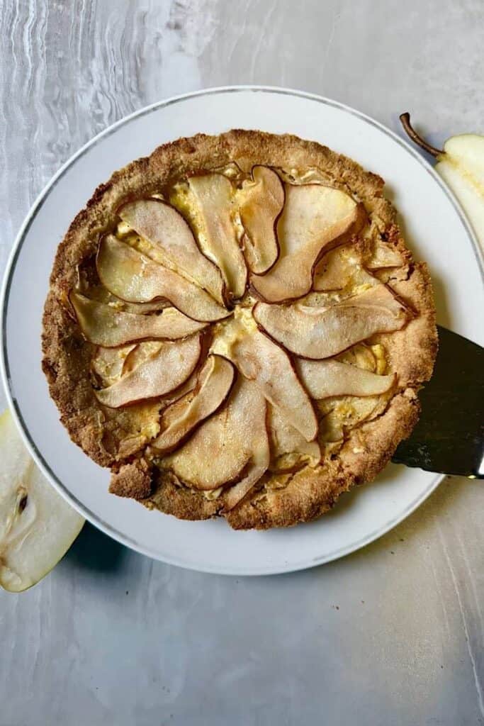This Pear Tart Recipe with Fresh Pears is a lighter, low-carb twist on the classic French dessert — with an almond flour crust, creamy spiced filling, and juicy ripe pears that bring natural sweetness. It’s elegant, cozy, and perfect for Thanksgiving or any fall celebration.