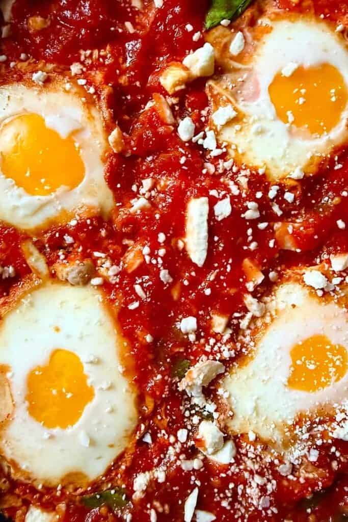 Unlike traditional versions, this is a low carb, diabetic-friendly shakshuka that won’t spike your blood sugar. The protein from the eggs and feta helps balance the natural carbs in the tomato base, while the fiber from spinach keeps you full longer.